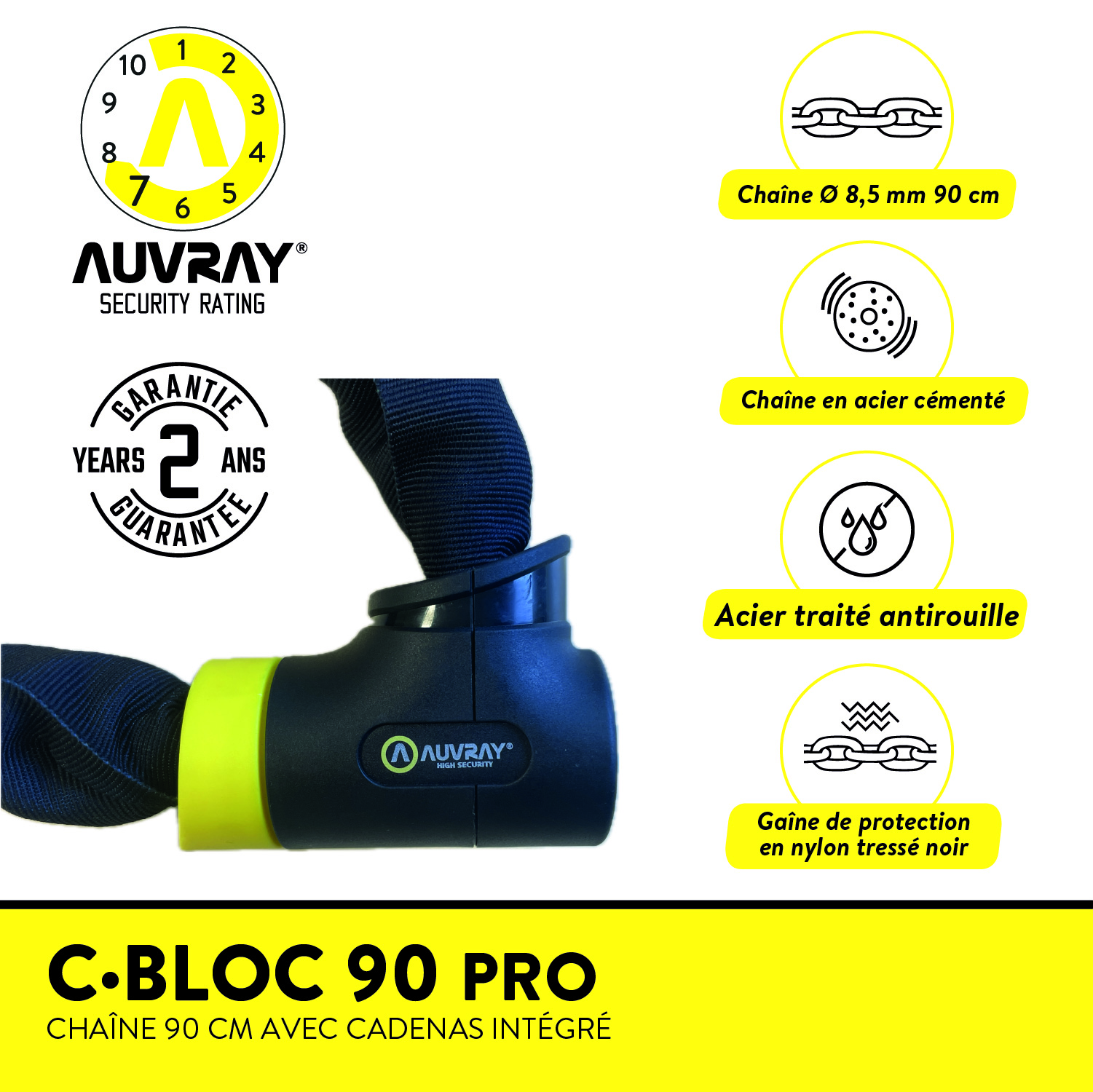 La chaine C Bloc Pro est certifié ART**, attestant de sa haute performance en matière de sécurité. Confiant dans la qualité de ses produits, Auvray offre une garantie de 2 ans sur cet antivol, vous assurant une protection fiable et durable.