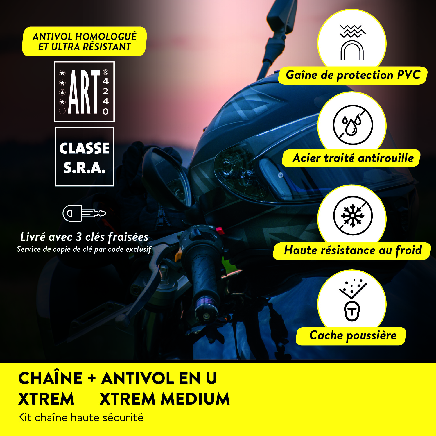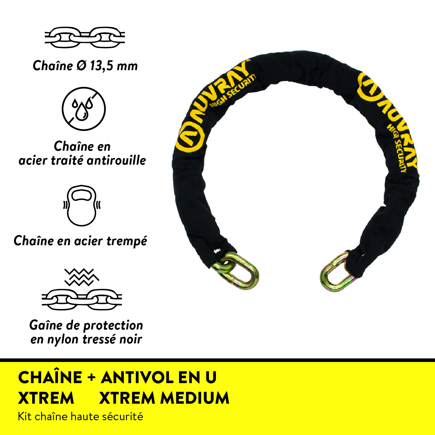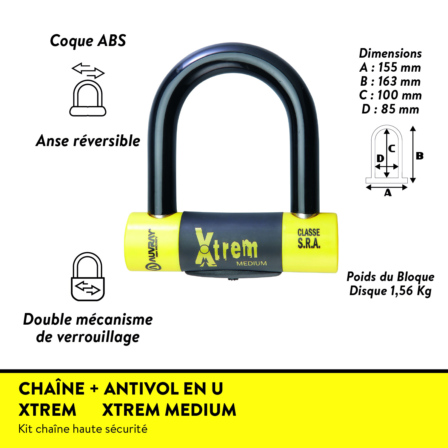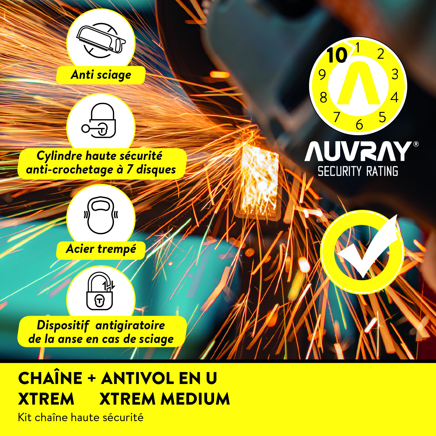 AUVRAY Chaîne Xtrem + Bloque-Disque Xtrem Medium 85 x 100 – Combo ultra-sécurisé pour motos et scooters