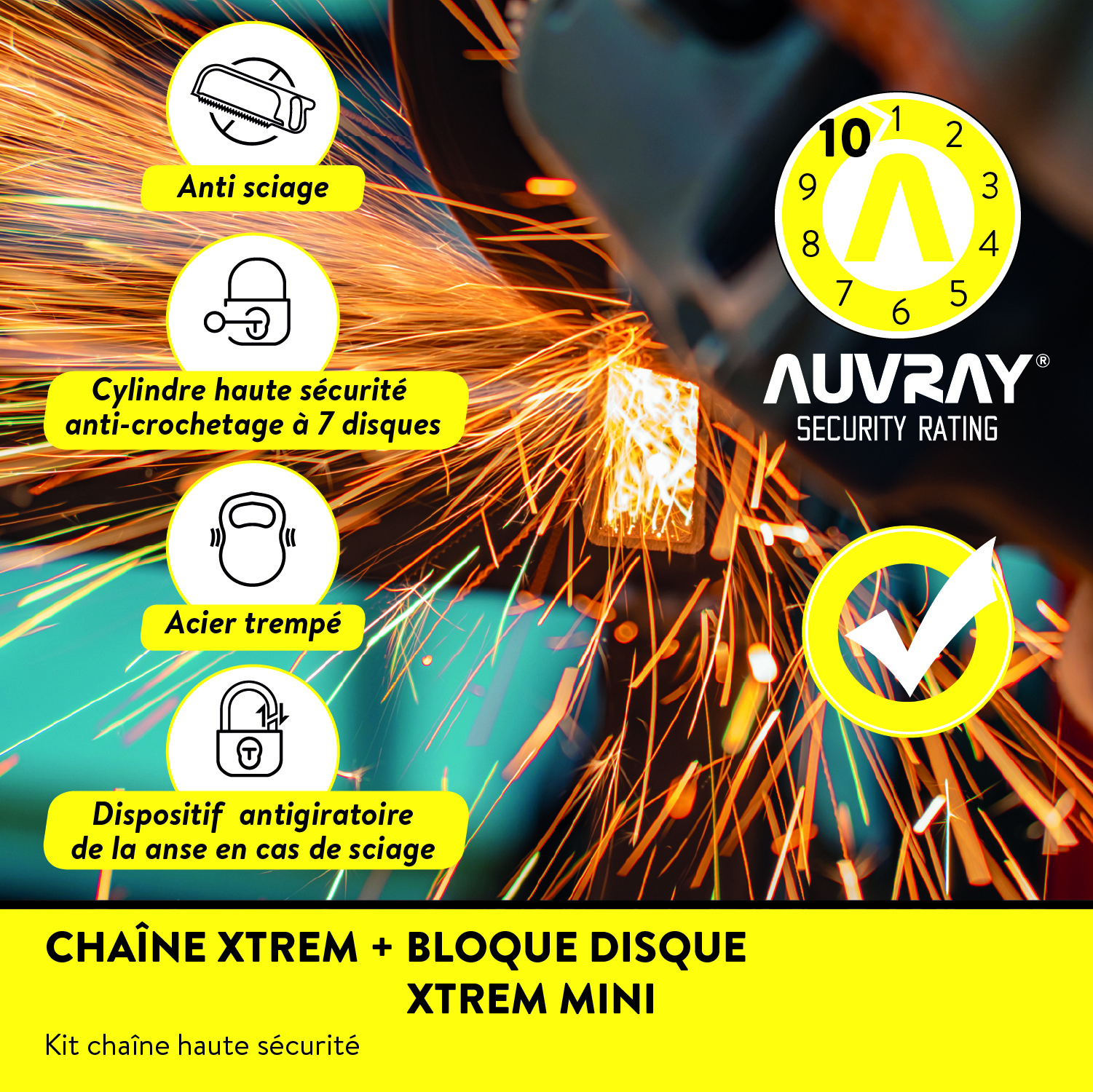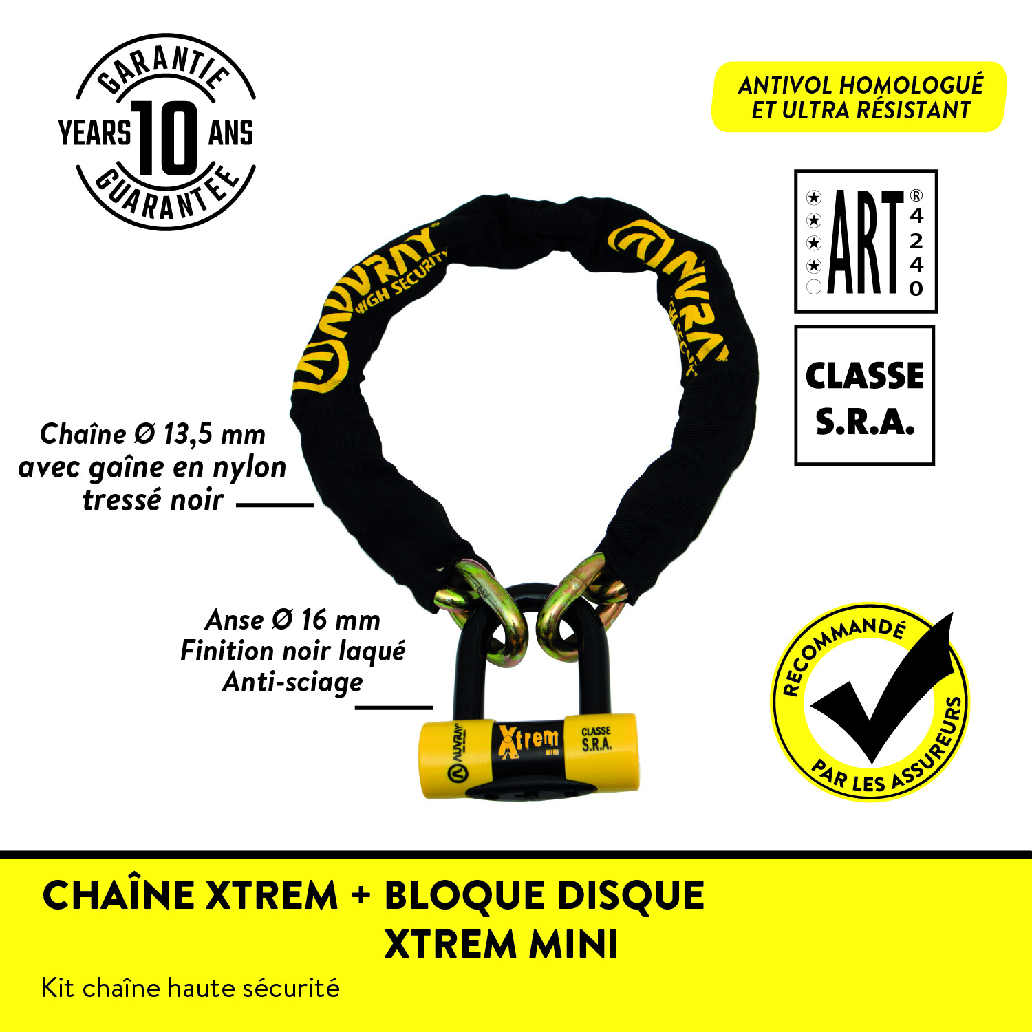 AUVRAY Chaîne + Bloque-Disque Classe SRA – Combo ultra-sécurisé pour motos et scooters