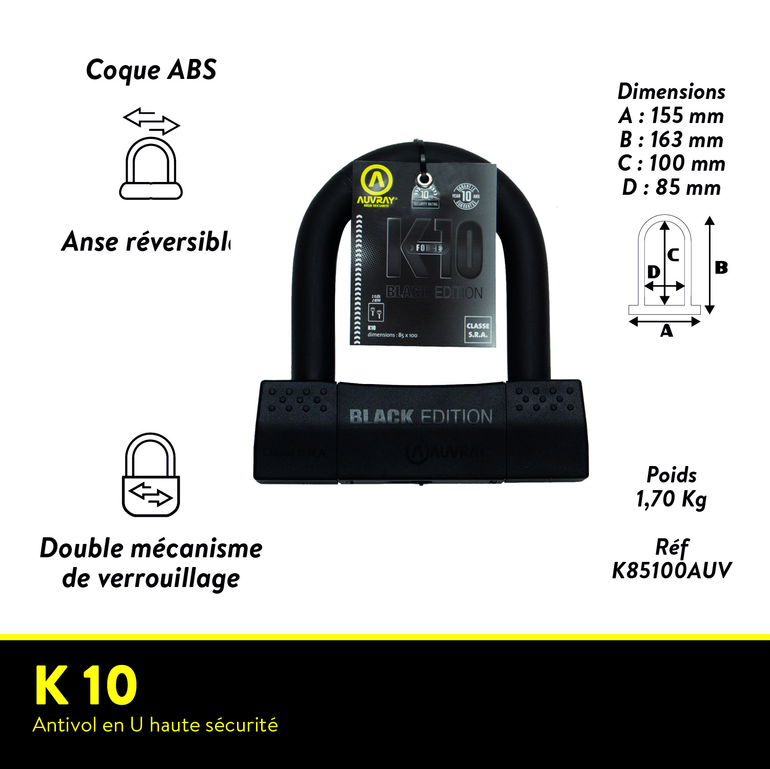 K 10 – L’antivol en U haute sécurité conçu pour résister aux attaques les plus extrêmes