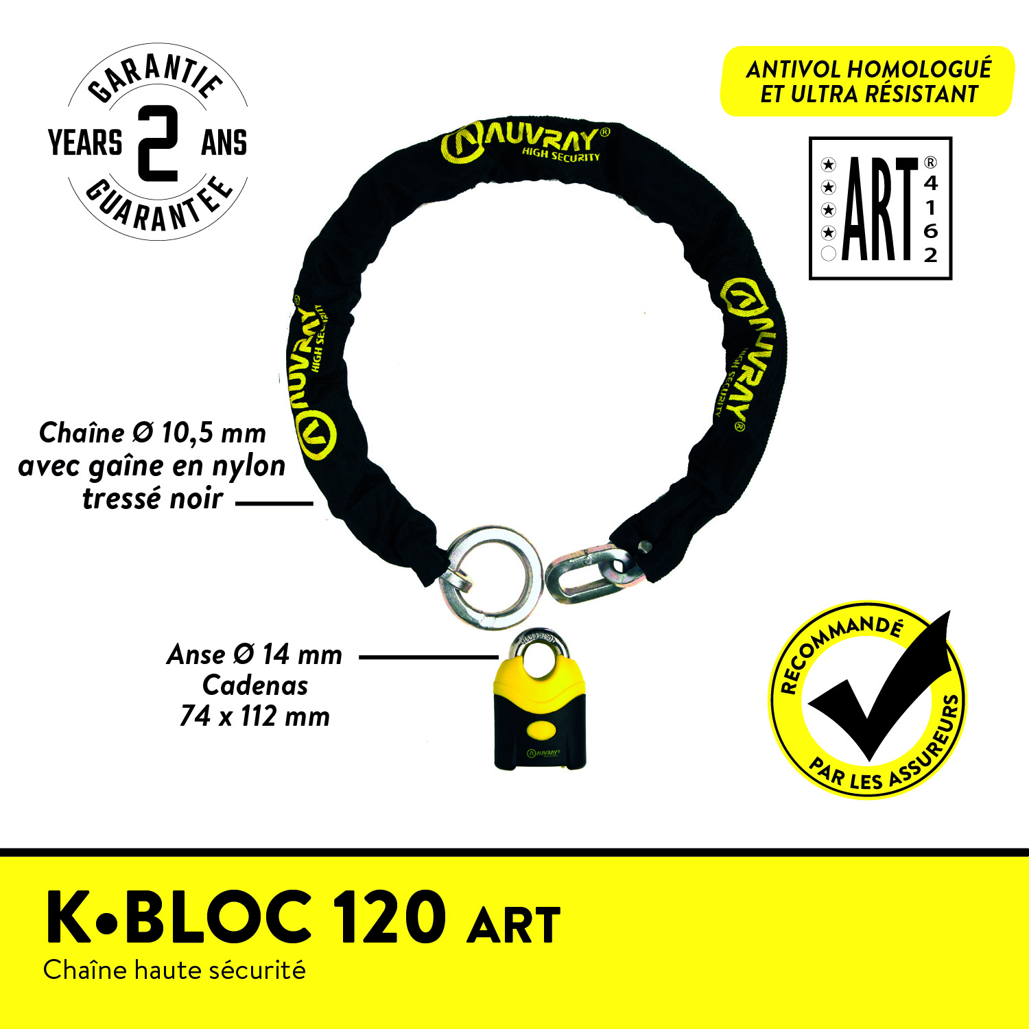 ✔️ Cadenas certifié ART – protection antivol reconnue