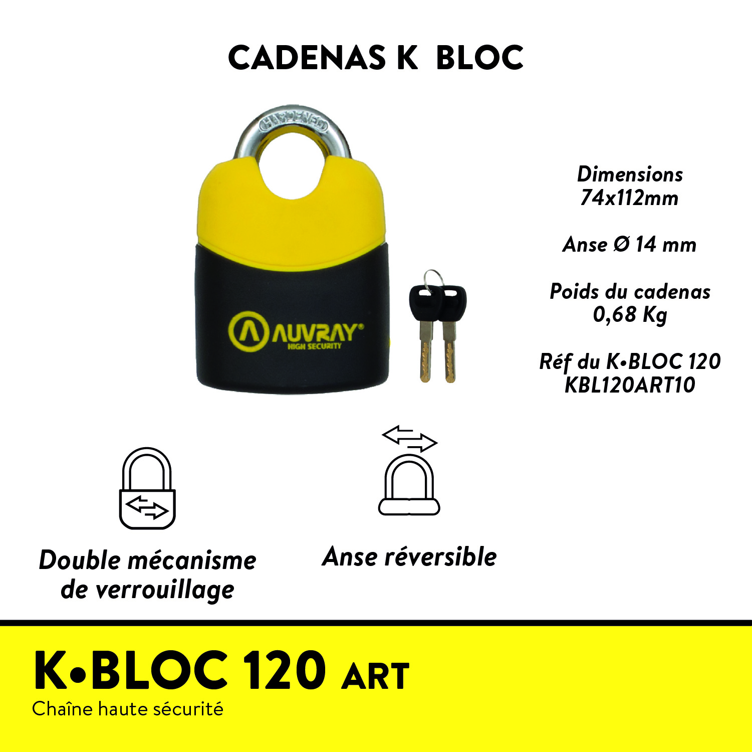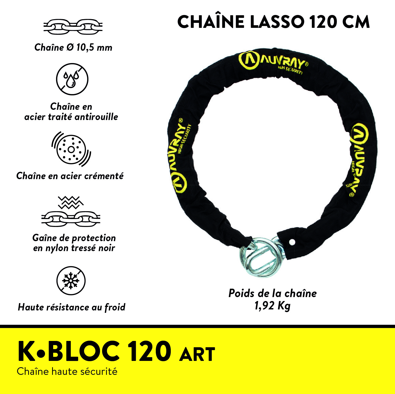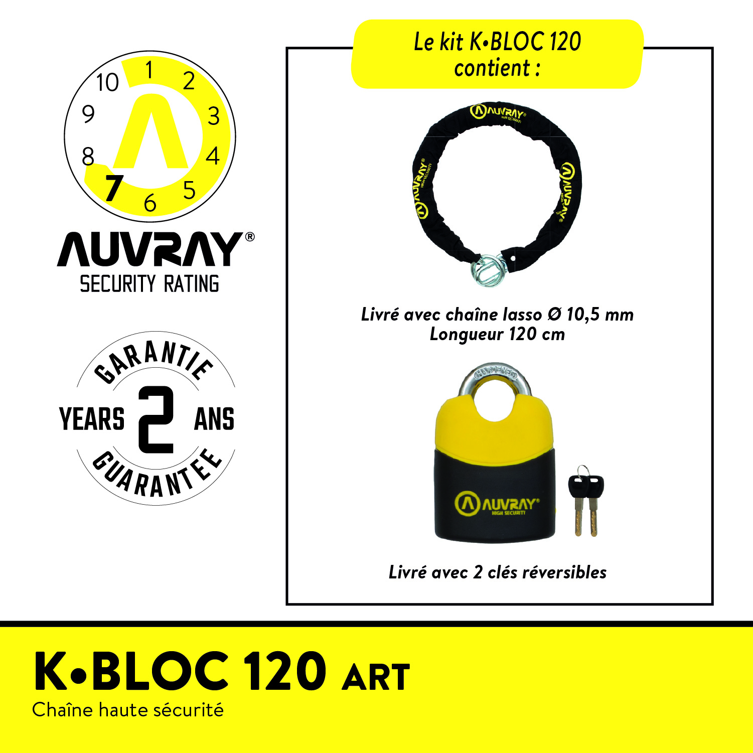 AUVRAY Kit K-BLOC – Chaîne 120 cm + Cadenas ART Haute Sécurité